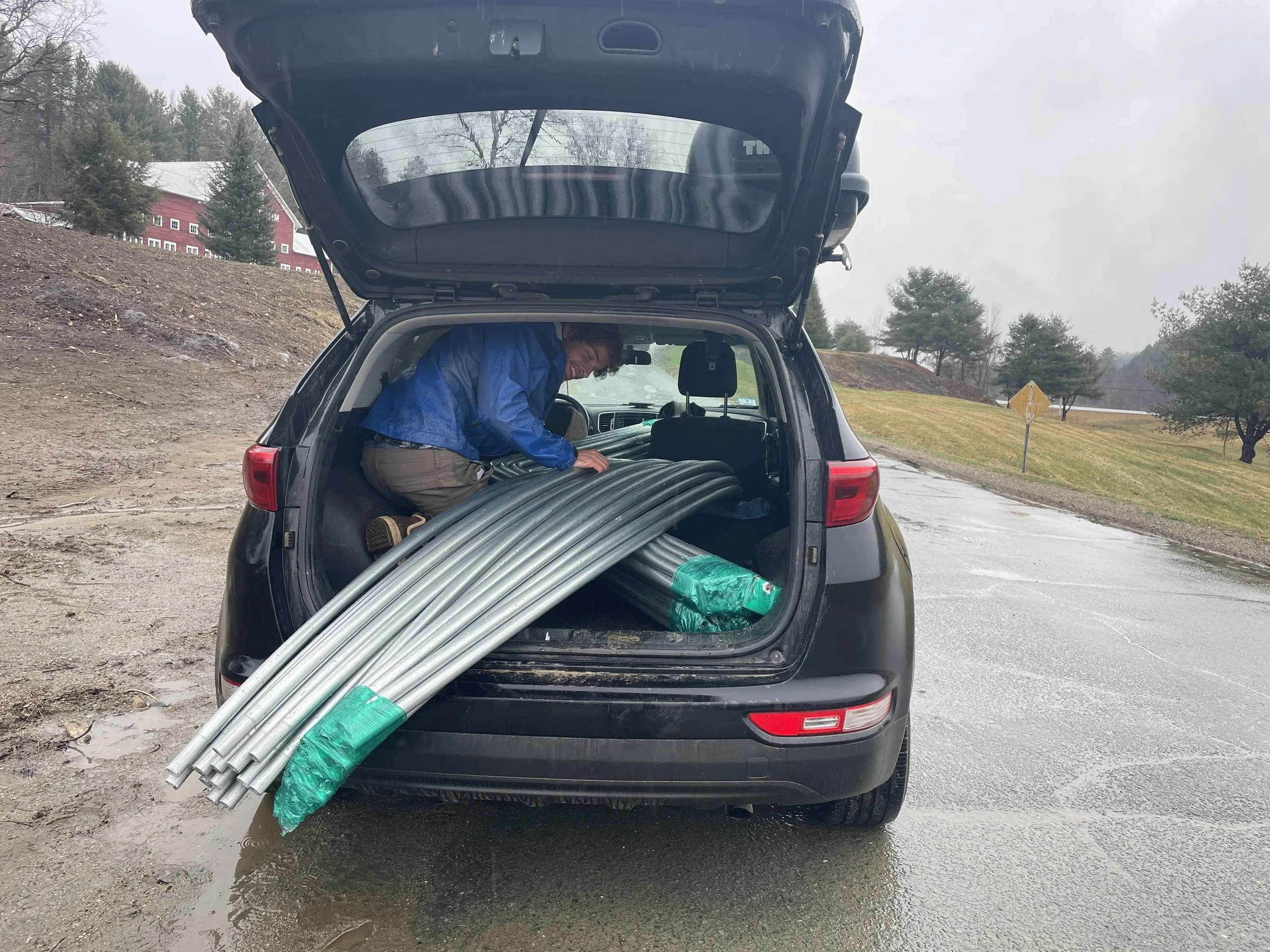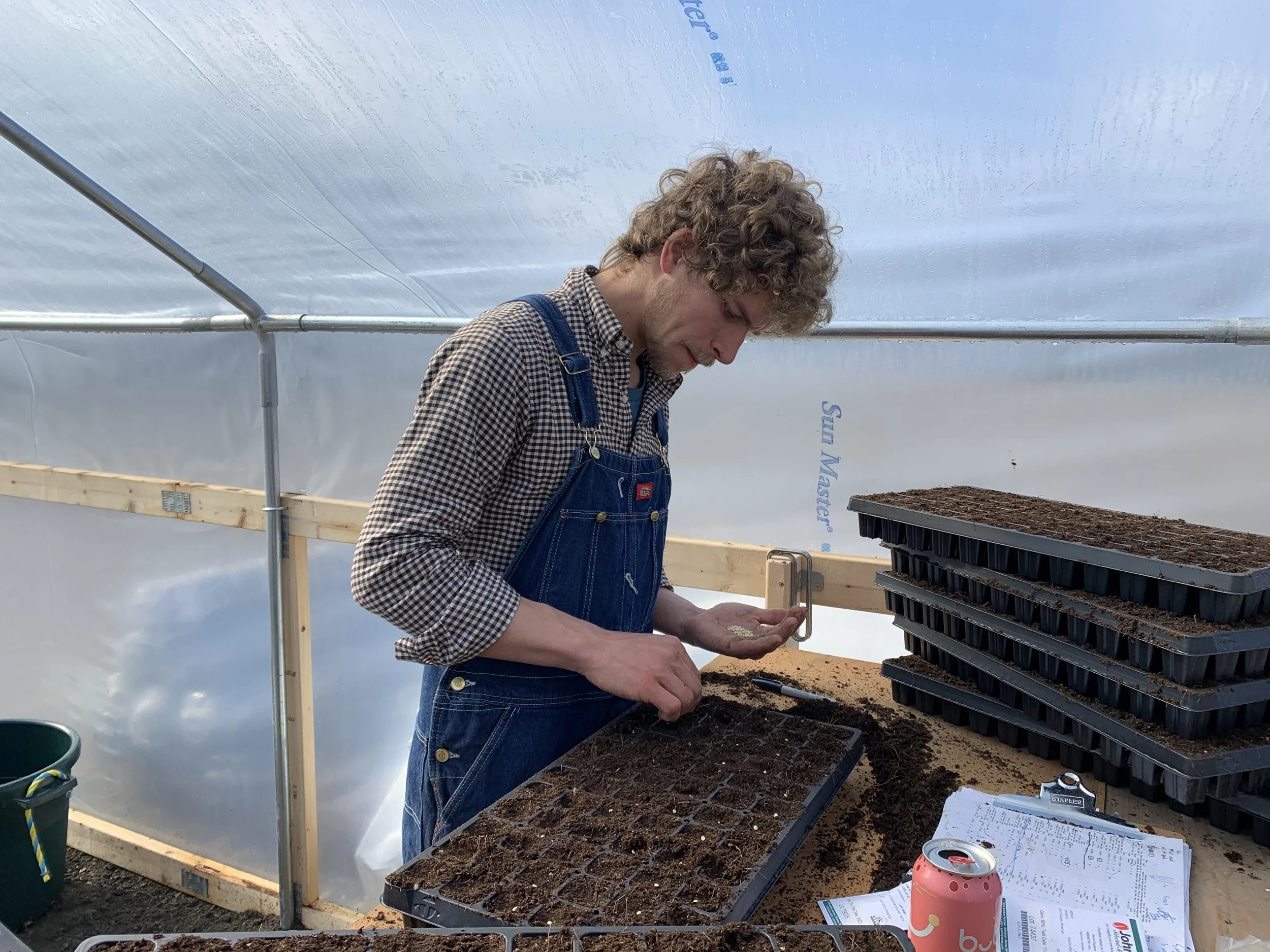 It has officially been one month since we arrived at our acre of frozen, degraded pasture in mid March. Rocky Branch Farm is beginning to look a lot more like a farm with seeds germinating by the thousand in our recently completed propagation greenhouse. Caterpillar tunnel construction is under way (despite missing components), and we have received and assembled nearly all of our tools. We have prepped about one quarter of an acre of land for planting and will begin direct seeding carrots, radishes, and peas outside within a week.